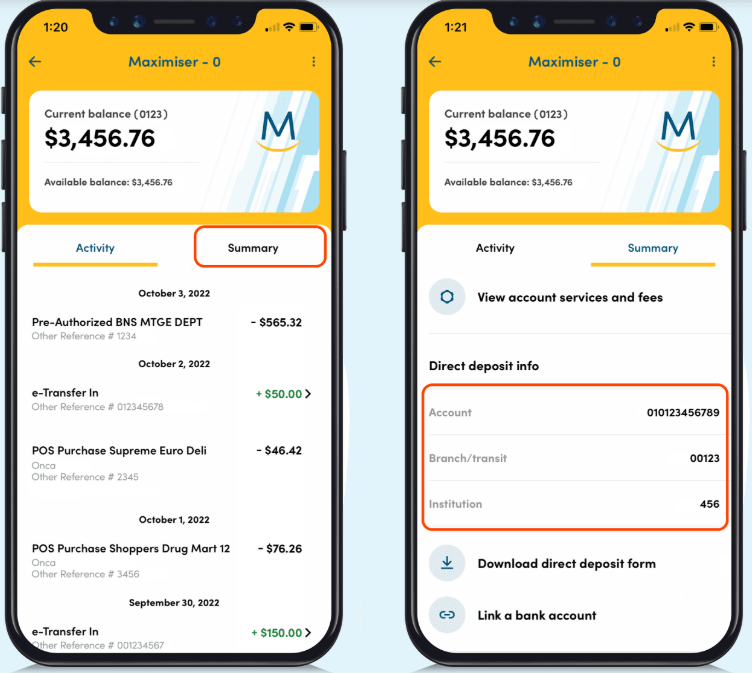مثال: نحوه یافتن ترنزیت ( ترانزیت ) نامبر خود از طریق اپ بانکی مریدین کانادا