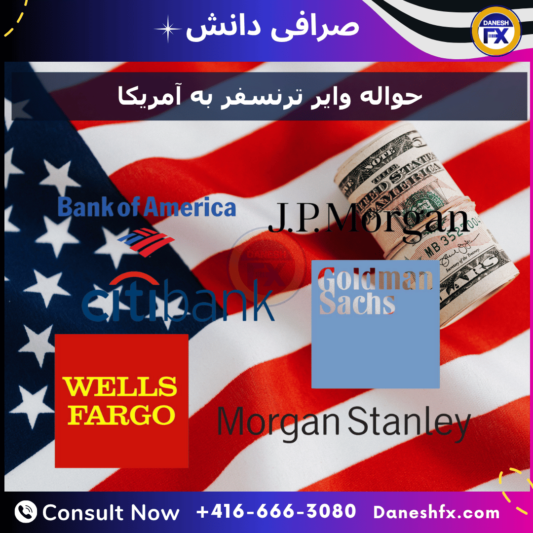 حواله وایر ترنسفر به کلیه بانکهای آمریکا از طریق صرافی دانش و از دو مسیر ذیل انجام می شود: